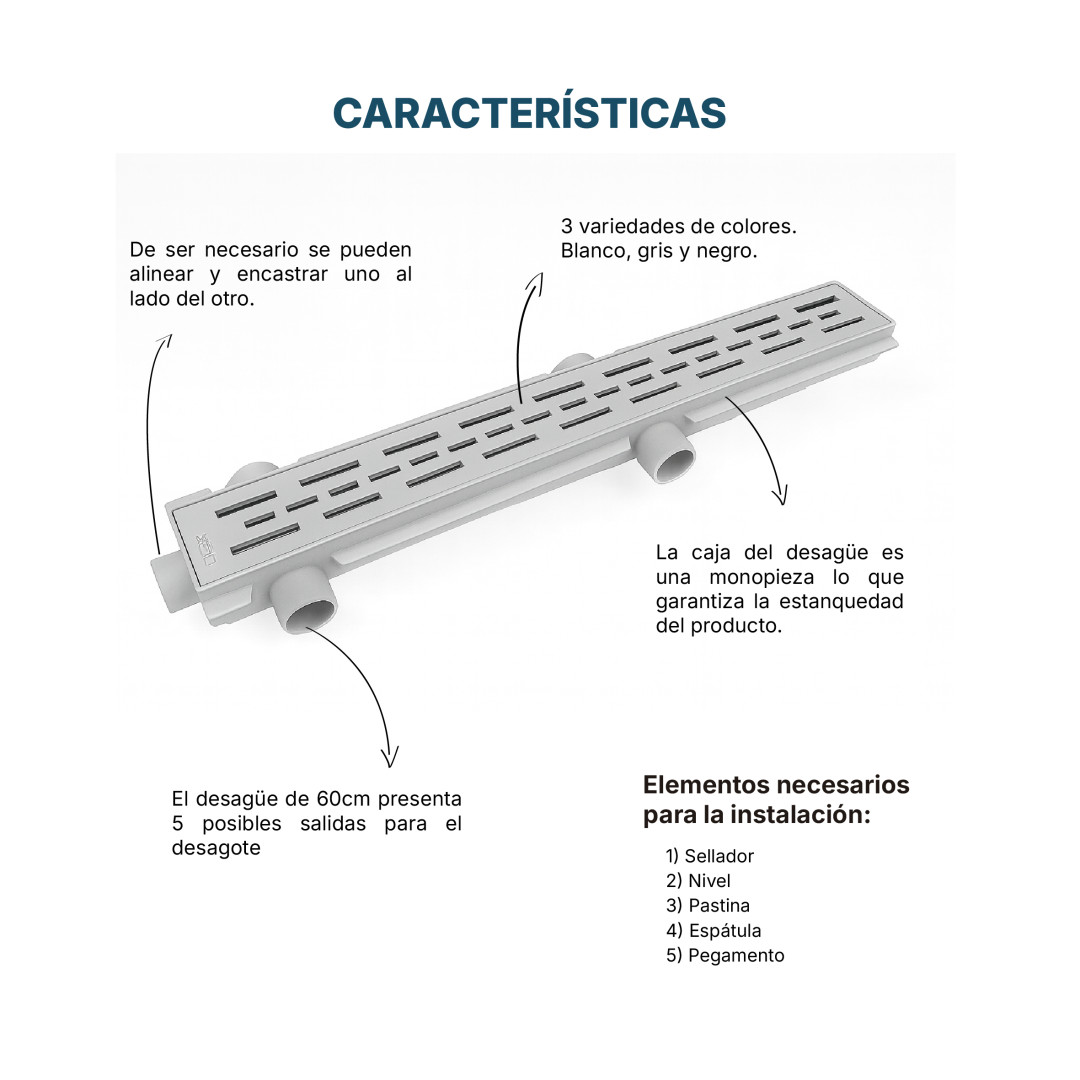 REJILLA LINEAL ENCASTRABLE ABS/PLASTICA GRIS IDEAL DE 60 CM
